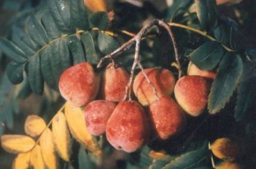 Von Sommerwind Regen und Sonnenglut verwöhnt hängen sie da und reifen genüßlich. Da könnte man fast neidisch werden ,doch wenn man zu prall wird fällt er ab. Gefüllt mit köstlichsten Aroma und Duftstoffen. Unsere Chemiker und Biologen noch mehr die Synthetisierer würden vor Verwunderung erblassen ,wo doch das Gute liegt so nahe. Doch es gibt sie noch, die echten Gourmets, die um die Geheimnisse der Früchte wissen. Speierlingsorbet und Parfait, Marmelade, Mus, Speierlingbrot Likör, Edelbrand, eingelegte Früchtchen Lebenselexier.